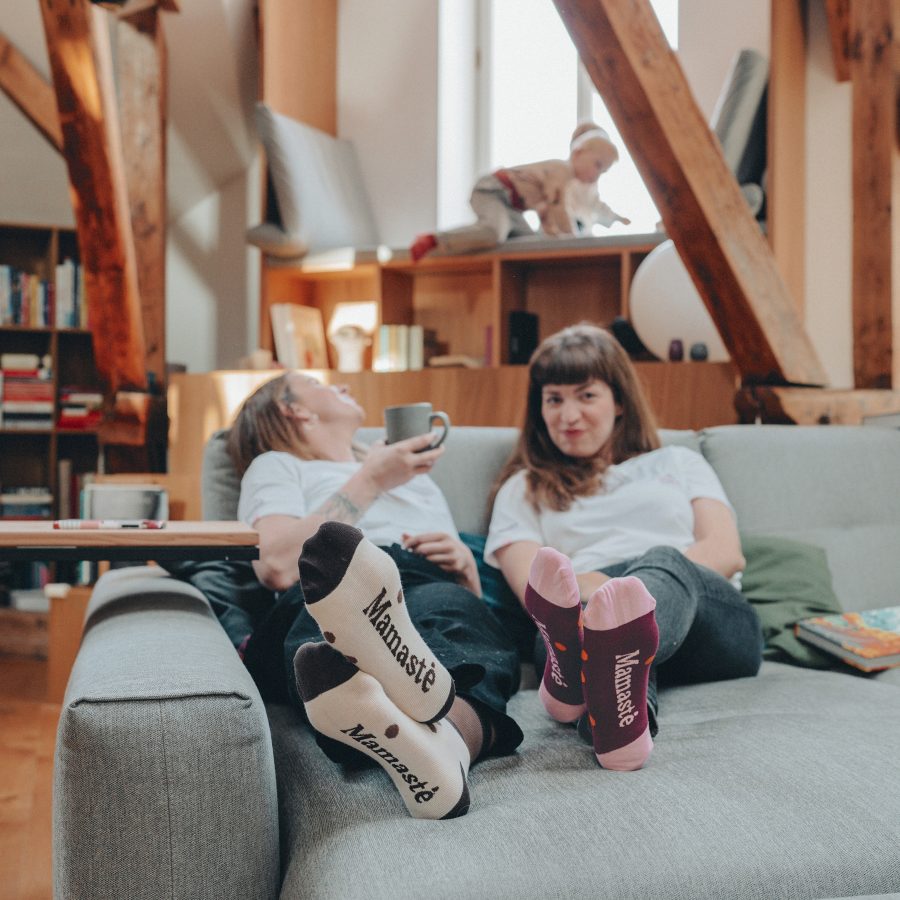 Pohodlné a veselé ponožky pre všetky mamy, ktoré potrebujú oddych. Na spodnej strane nájdete nápis „Mamasté“ – keď ho vidíte, je všetko tak, ako má byť 😉